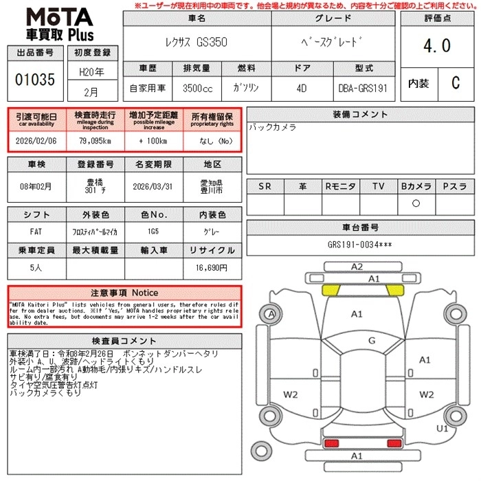 LEXUS GS 2008 г., лот № 1035