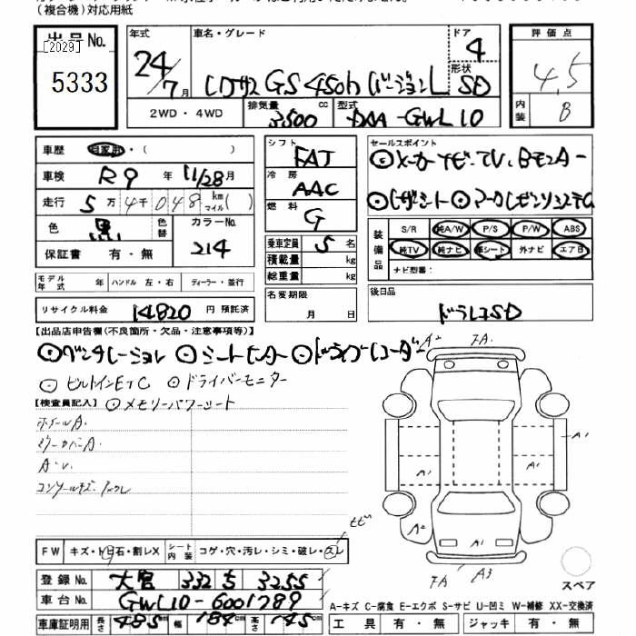 LEXUS GS 2012 г., лот № 5333
