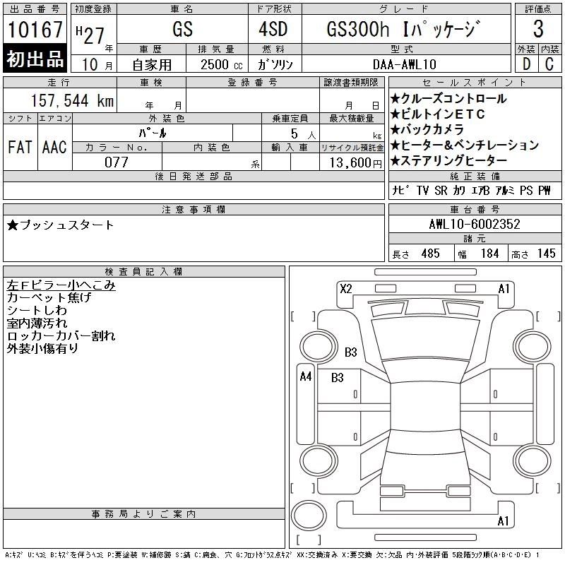Год выпуска2015 Пробег 158 000 км КузовAWL10 КомплектацияGS300H I PACKAGE