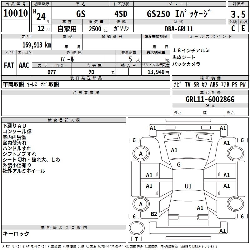 LEXUS GS 2012 г., лот № 10010