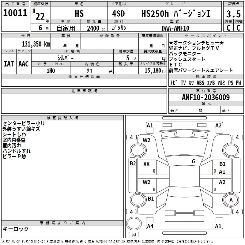 LEXUS HS 2010 г., лот № 10011