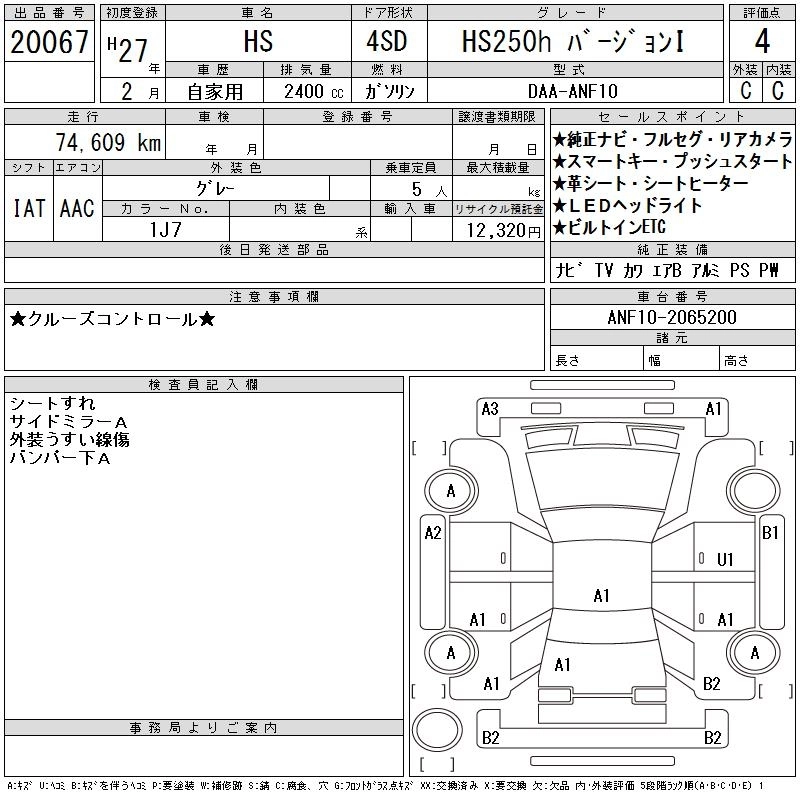 LEXUS HS 2015 г., лот № 20067