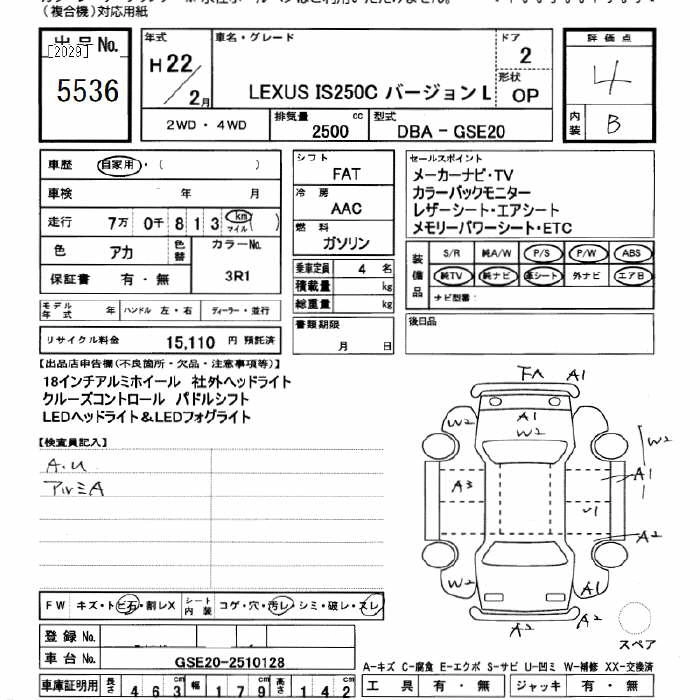 LEXUS IS 2010 г., лот № 5536