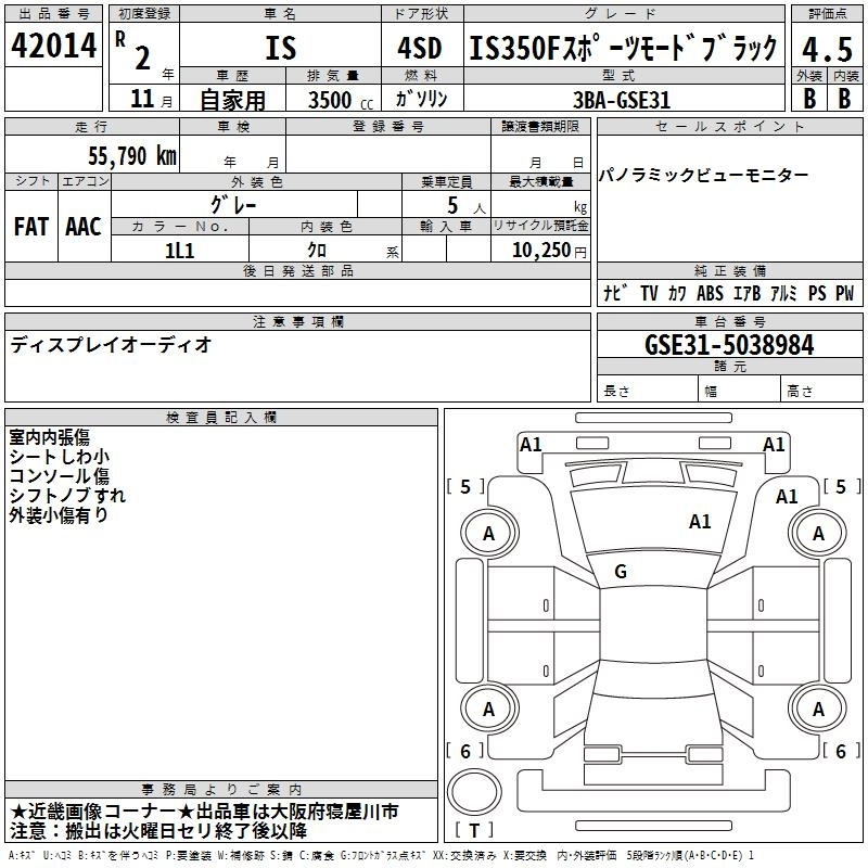 Год выпуска2020 Пробег 56 000 км КузовGSE31 КомплектацияIS350F SPORTS MODE BLACK