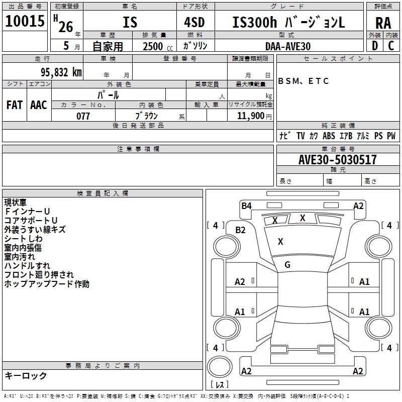 Год выпуска2014 Пробег 96 000 км КузовAVE30 КомплектацияIS300H VERSION L