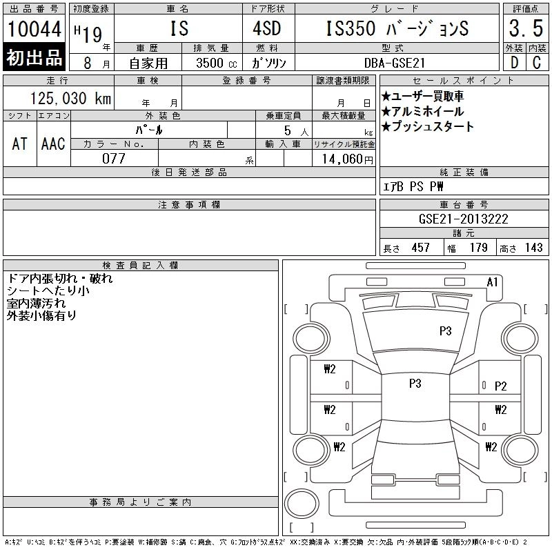 Год выпуска2007 Пробег 125 000 км КузовGSE21 КомплектацияIS350 VERSION S