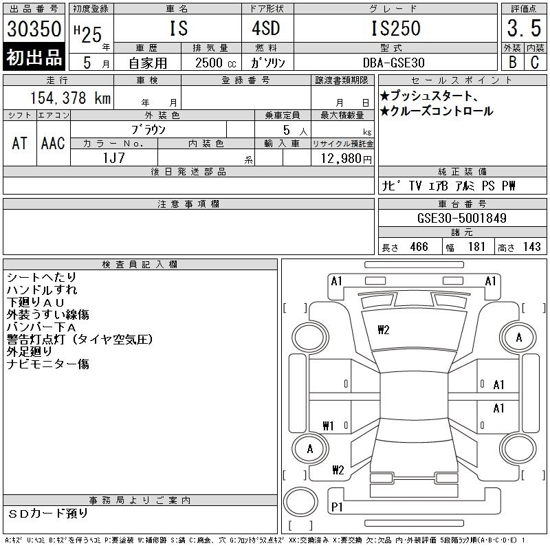 LEXUS IS 2013 г., лот № 30350