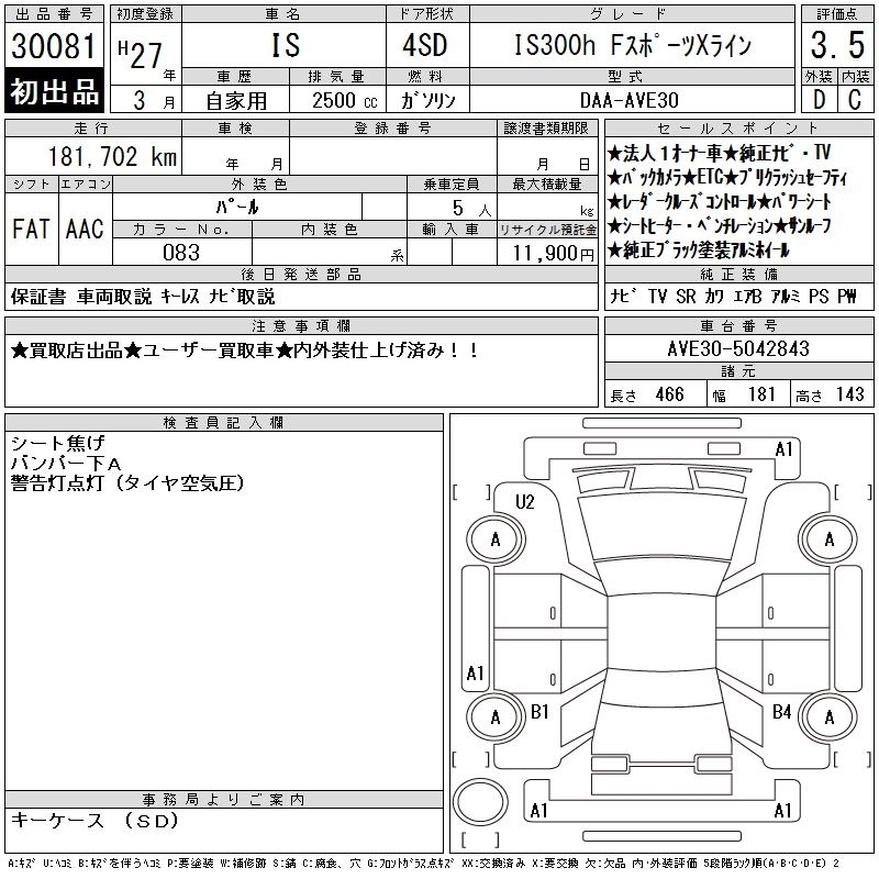 LEXUS IS 2015 г., лот № 30081