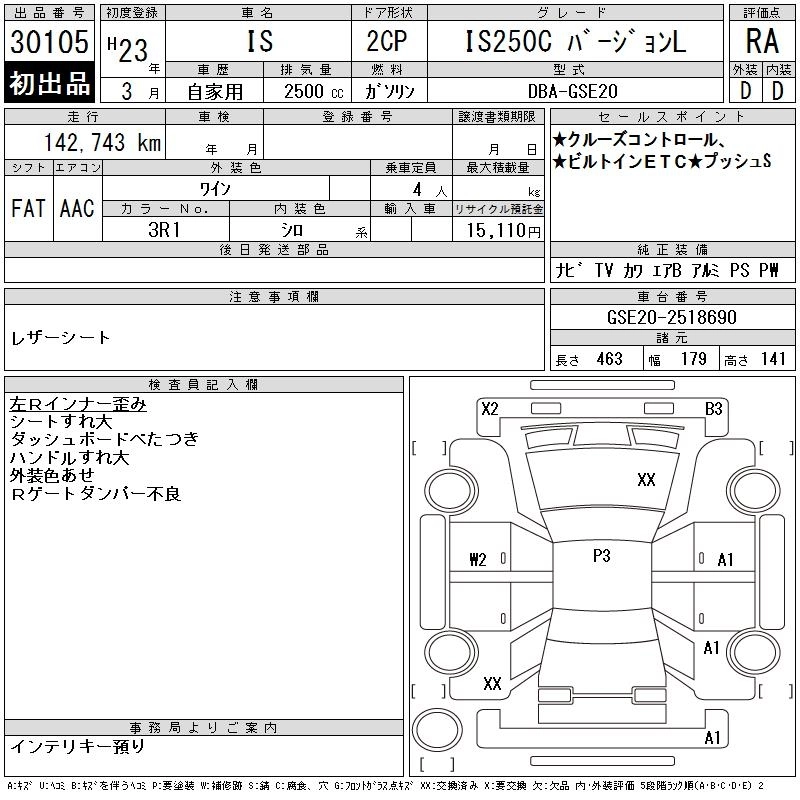 LEXUS IS 2011 г., лот № 30105