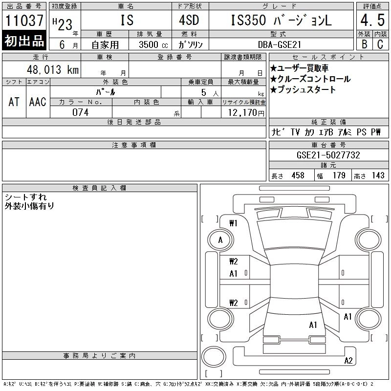 LEXUS IS 2011 г., лот № 11037