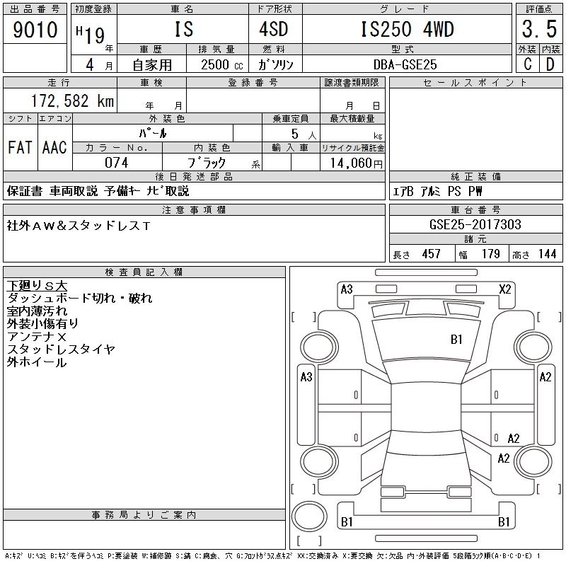 Год выпуска2007 Пробег 173 000 км КузовGSE25 КомплектацияIS250 4WD
