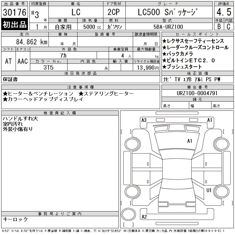 Год выпуска2021 Пробег 85 000 км КузовURZ100 КомплектацияLC500 S PACKAGE