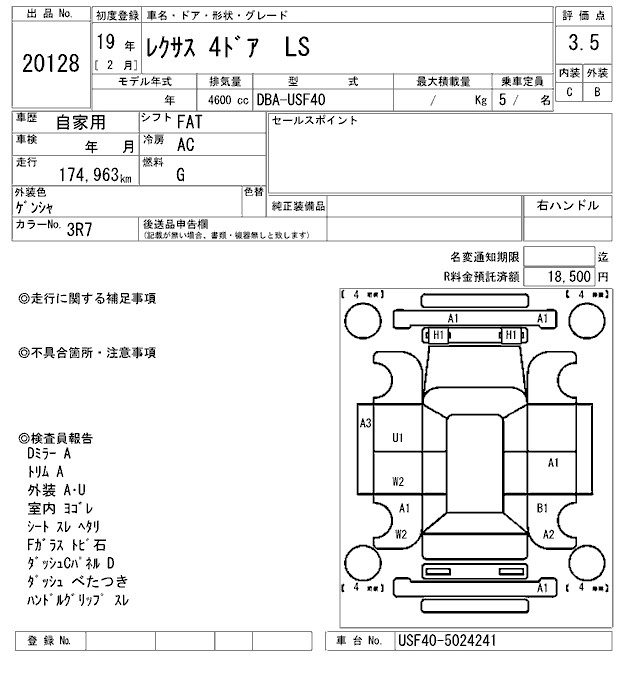 | 600HL REAR SEPARATE SEAT PACKAGE | DAA-UVF46 | 2UR-FSE | Full-time 4WD | CVT | 4968cc | 394ps(290kW)/6400rpm | AИ-95 | 15 100 000 | |