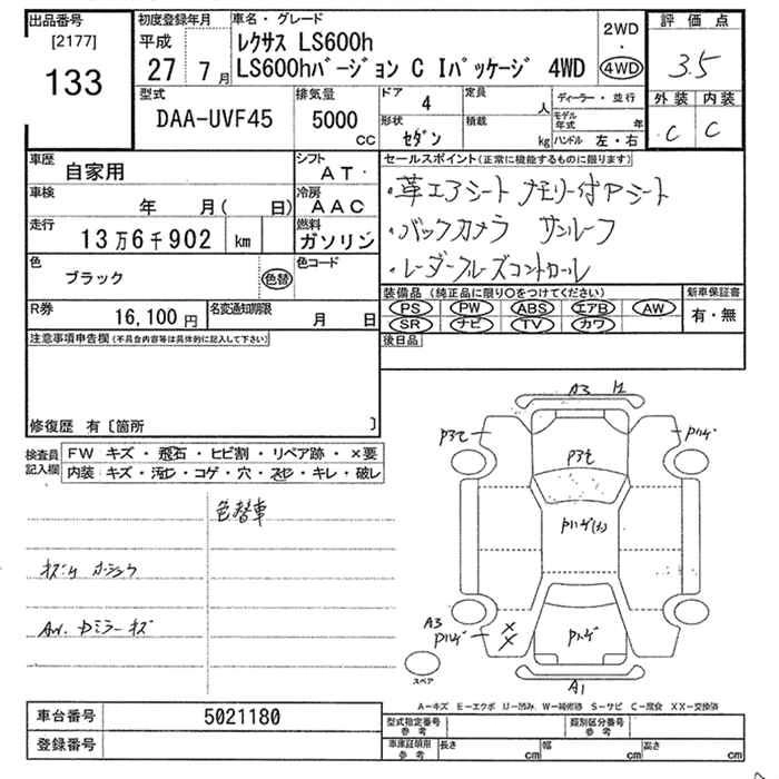 | 600HL | DAA-UVF46 | 2UR-FSE | Full-time 4WD | CVT | 4968cc | 394ps(290kW)/6400rpm | AИ-95 | 14 102 000 |