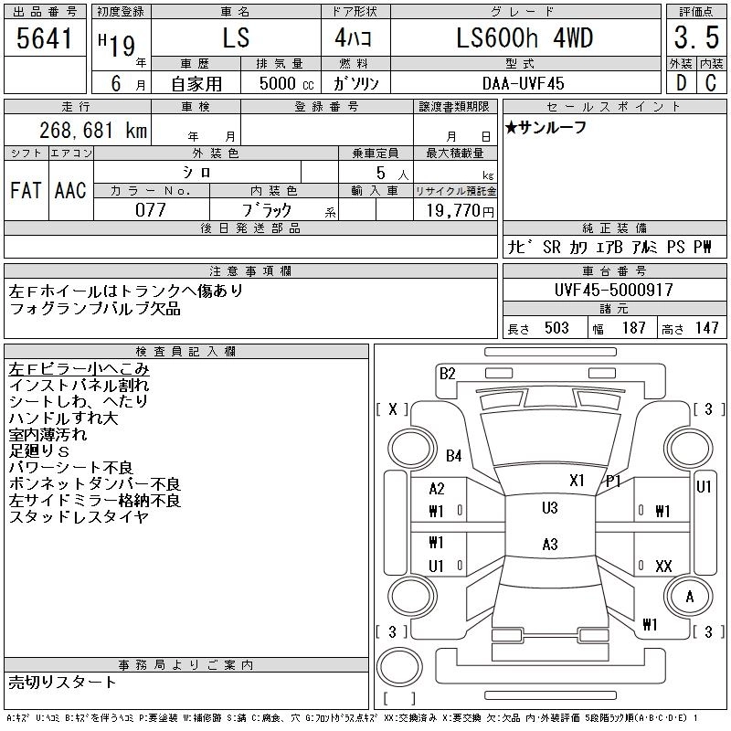 | 600HL REAR SEPARATE SEAT PACKAGE | DAA-UVF46 | 2UR-FSE | Full-time 4WD | CVT | 4968cc | 394ps(290kW)/6400rpm | AИ-95 | 15 100 000 | |