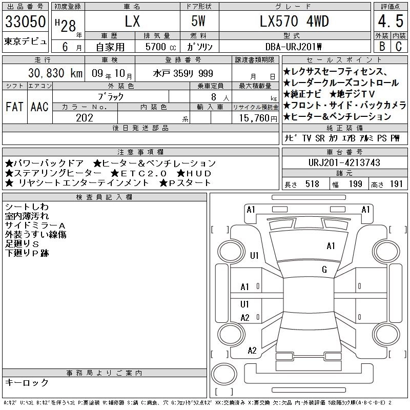 LEXUS LX 2016 г., лот № 33050