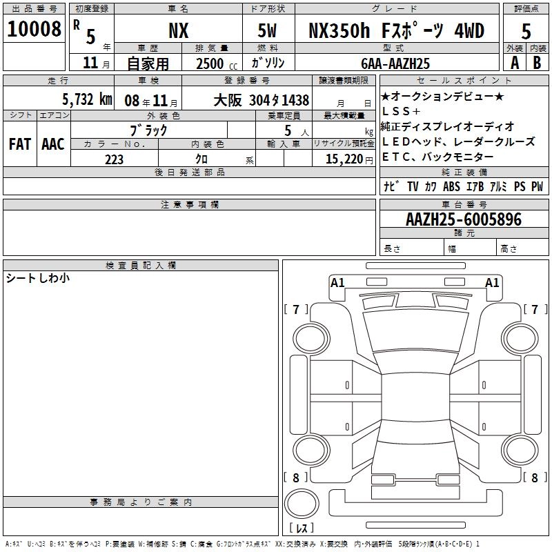 Год выпуска2023 Пробег 6 000 км КузовAAZH25 КомплектацияNX350H F SPORT 4WD