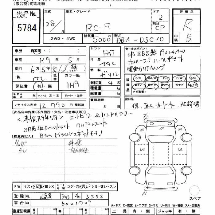 | BASE GRADE | DBA-USC10 | 2UR-GSE | FR | 8AT | 4968cc | 477ps(351kW)/7100rpm | AИ-95 | 9 670 000 | |