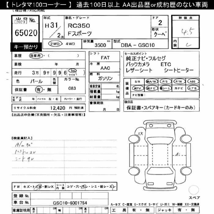 LEXUS RC 2019 г., лот № 65020
