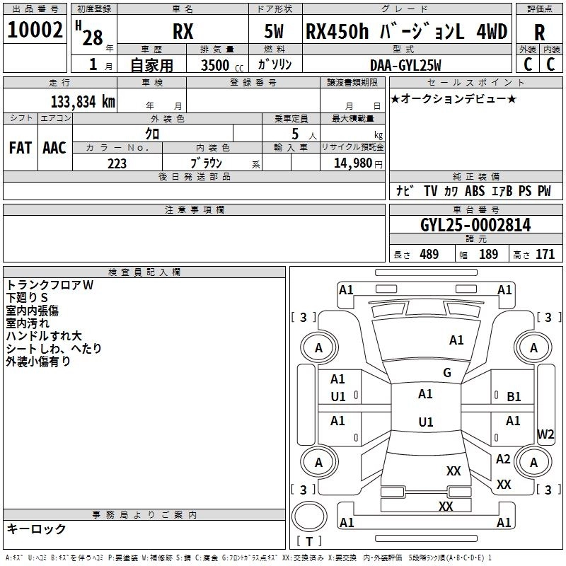 Год выпуска2016 Пробег 134 000 км КузовGYL25W КомплектацияRX450H VERSION L 4WD