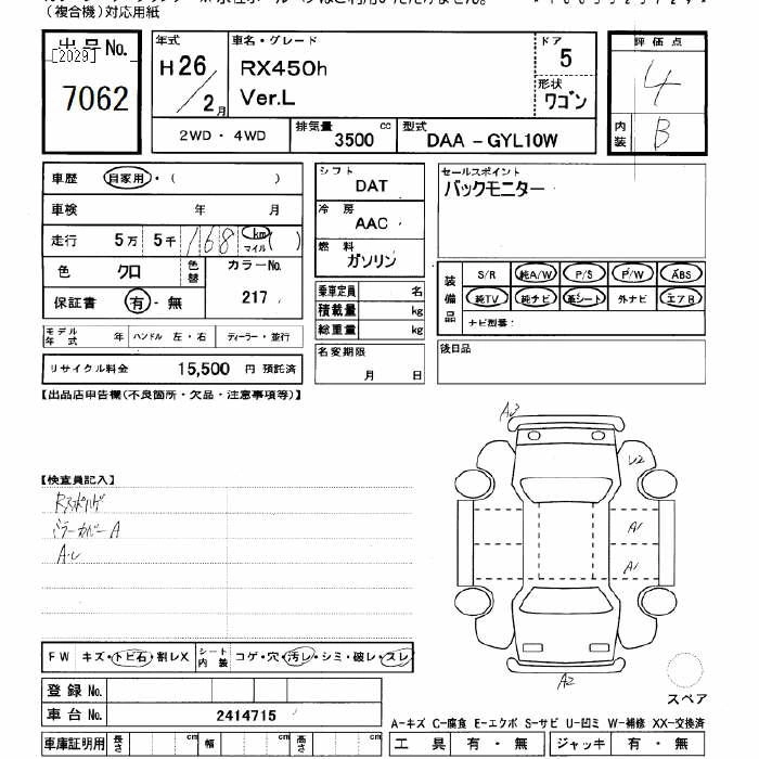 LEXUS RX 2014 г., лот № 7062