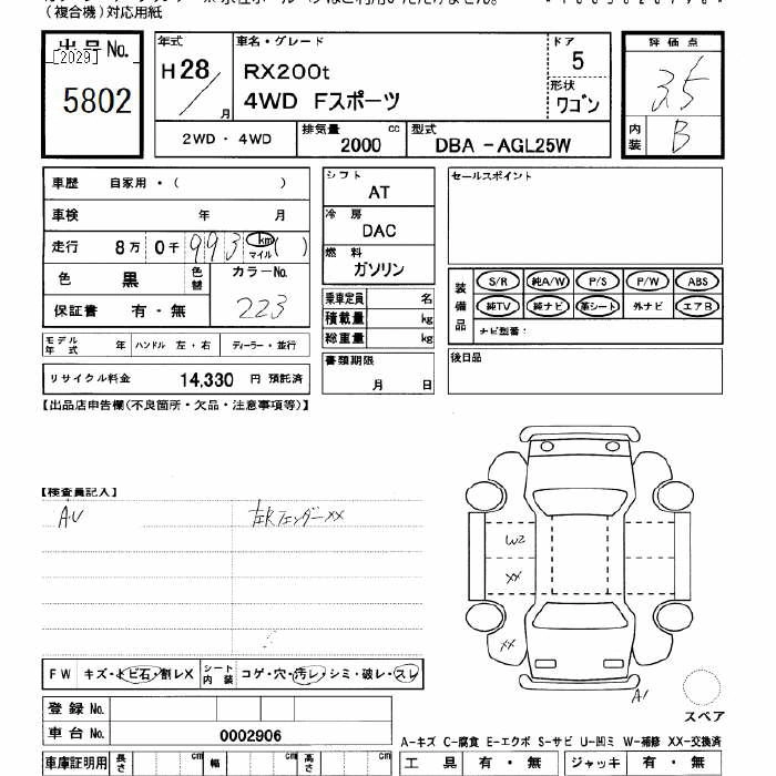 Год выпуска2016 Пробег 80 000 км КузовAGL25W Комплектация4WD F SPORT