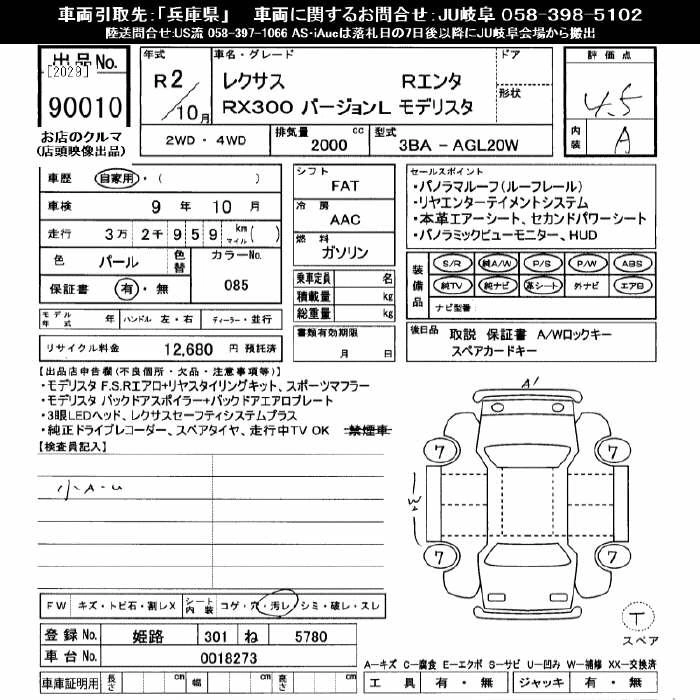 LEXUS RX 2020 г., лот № 90010