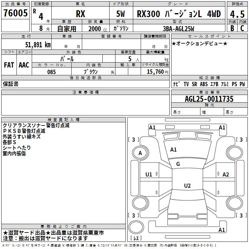Год выпуска2022 Пробег 52 000 км КузовAGL25W КомплектацияRX300 VERSION L 4WD