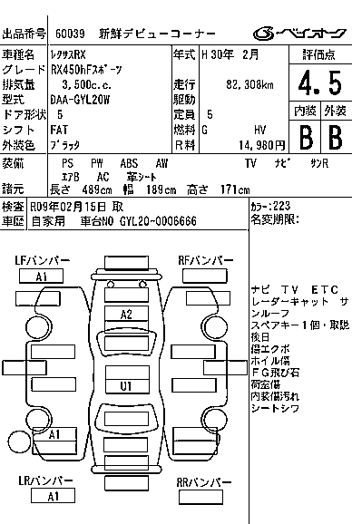 LEXUS RX 2018 г., лот № 60039