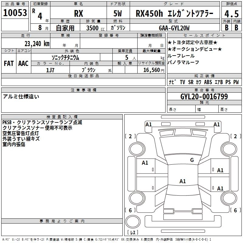 Год выпуска2022 Пробег 23 000 км КузовGYL20W КомплектацияRX450H ELEGANT TOURER