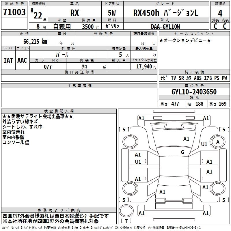 Год выпуска2010 Пробег 66 000 км КузовGYL10W КомплектацияRX450H VERSION L