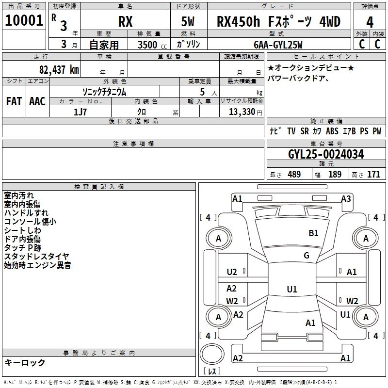 Год выпуска2021 Пробег 82 000 км КузовGYL25W КомплектацияRX450H F SPORT 4WD