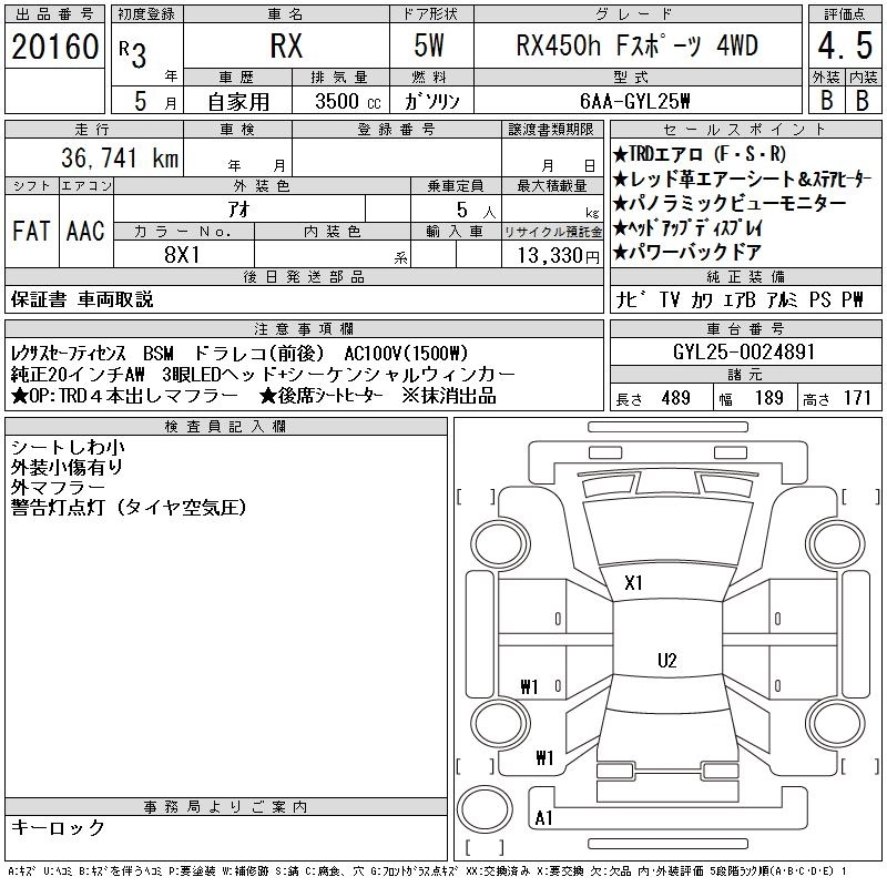 Год выпуска2021 Пробег 37 000 км КузовGYL25W КомплектацияRX450H F SPORT 4WD