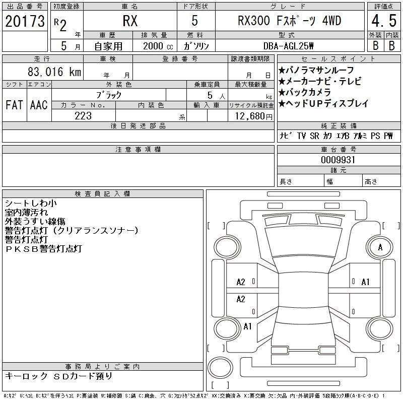 Год выпуска2020 Пробег 83 000 км КузовAGL25W КомплектацияRX300 F SPORT 4WD