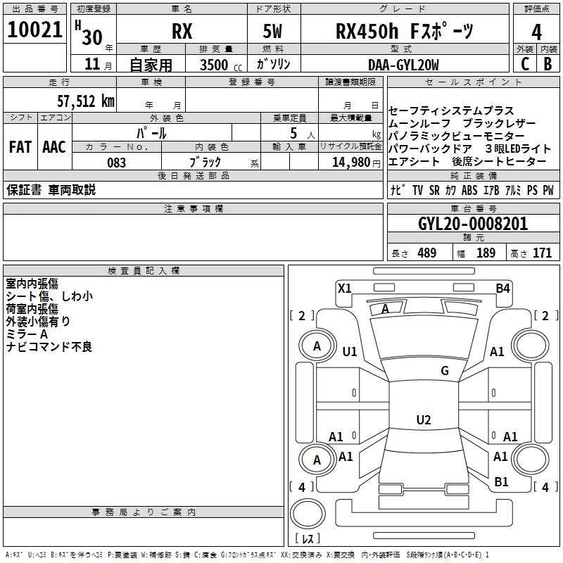 Год выпуска2018 Пробег 58 000 км КузовGYL20W КомплектацияRX450H F SPORT