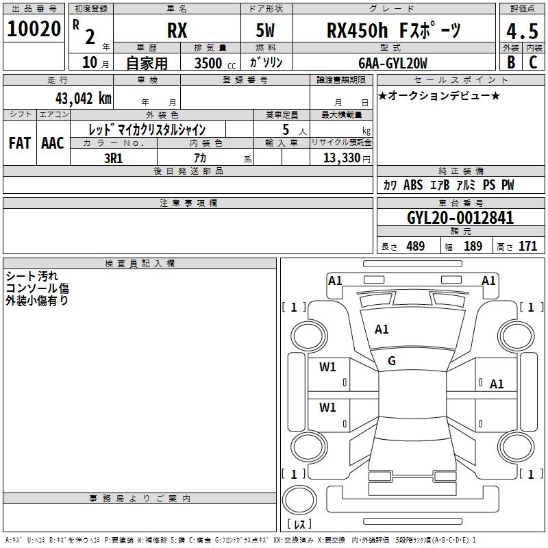 Год выпуска2020 Пробег 43 000 км КузовGYL20W КомплектацияRX450H F SPORT