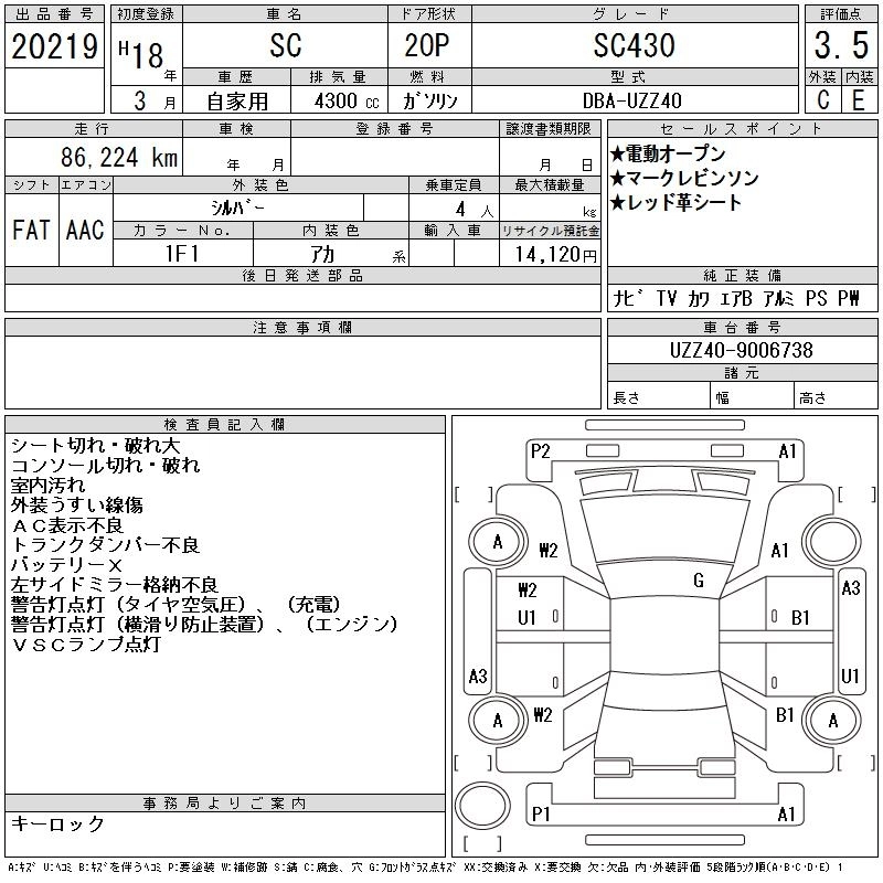 LEXUS SC 2006 г., лот № 20219