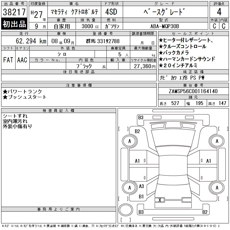 | S Q4 | ABA-MQP30AA | ---- | Full-time 4WD | 8AT | 2979cc | 410ps(301kW)/5500rpm | AИ-95 | 14 100 000 | |