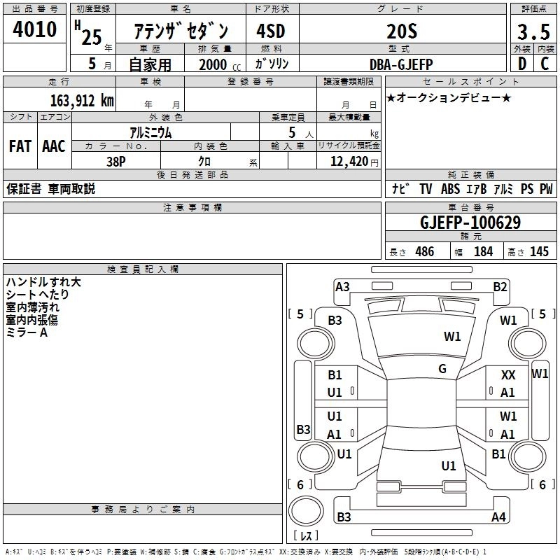 MAZDA ATENZA SEDAN 2013 г., лот № 4010