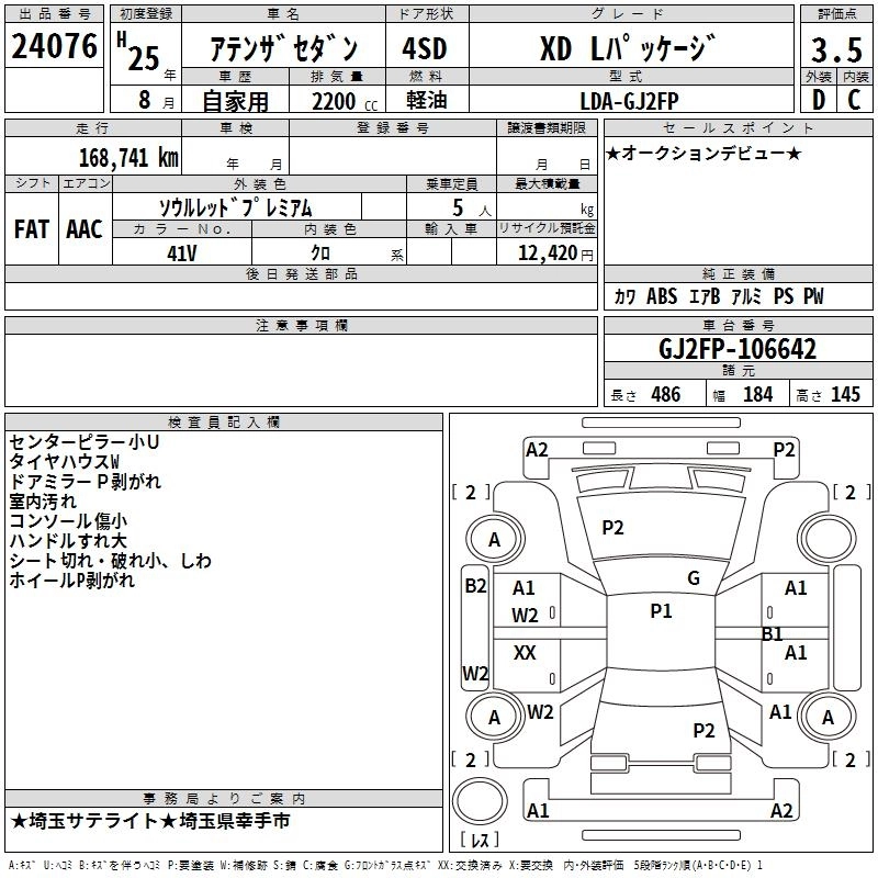 XD L PACKAGE LDA-GJ2FP SH-VPTR FF 6MT 2188cc 175ps(129kW)/4500rpm Дизельное топливо 3 482 500