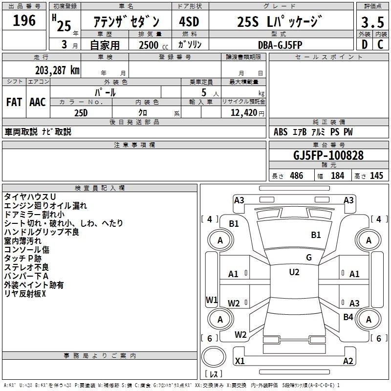 MAZDA ATENZA SEDAN 2013 г., лот № 196