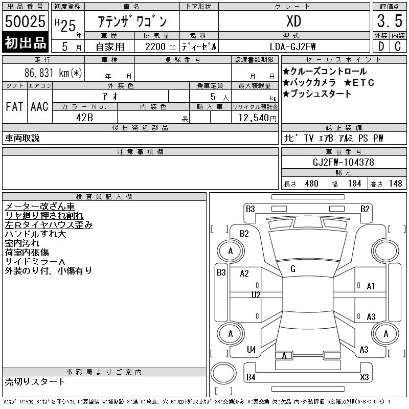 MAZDA ATENZA WAGON 2013 г., лот № 50025