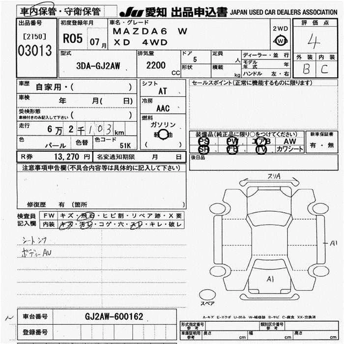 Статус выставлен на аукцион Лот 3013 Аукцион JU Aichi Дата аукциона 19.03.2026