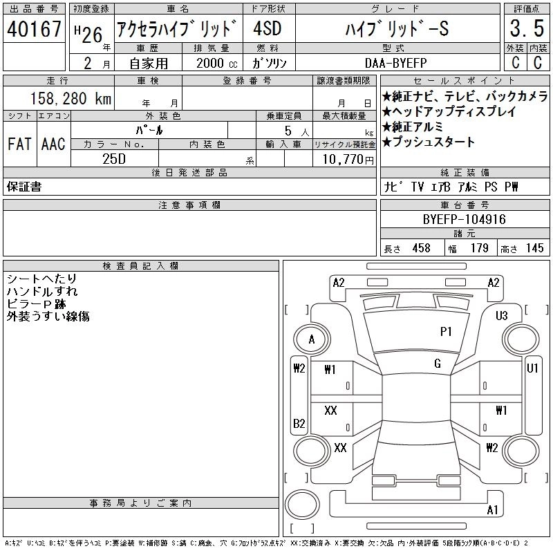 | HYBRID-S L PACKAGE | DAA-BYEFP | PE-VPH | FF | CVT | 1997cc | 99ps(73kW)/5200rpm | AИ-92 | 2 700 000 | |