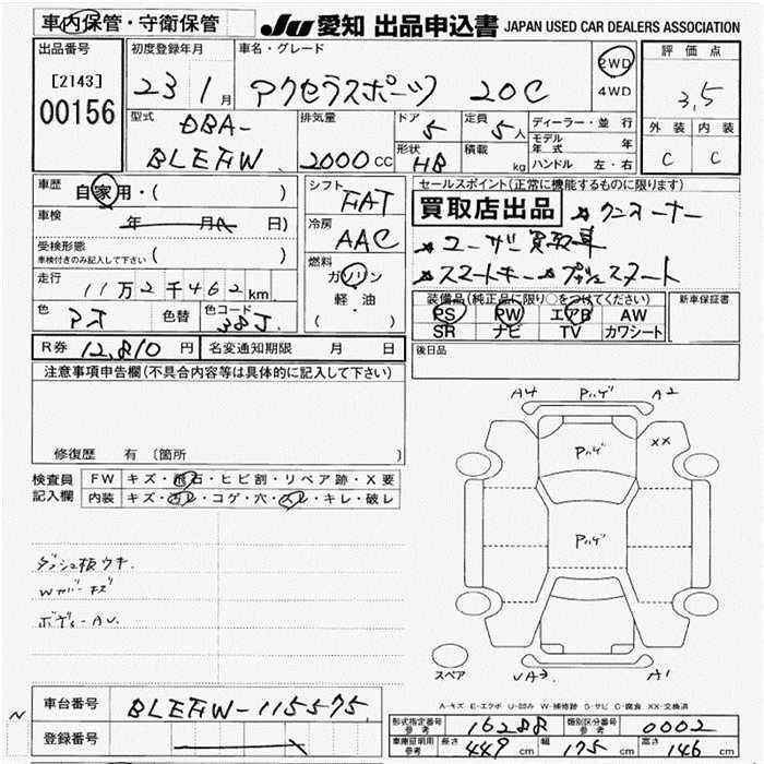 | 20S-SKYACTIV | DBA-BLFFW | PE-VPS | FF | 6AT | 1997cc | 154ps(113kW)/6000rpm | AИ-92 | 2 150 000 | |