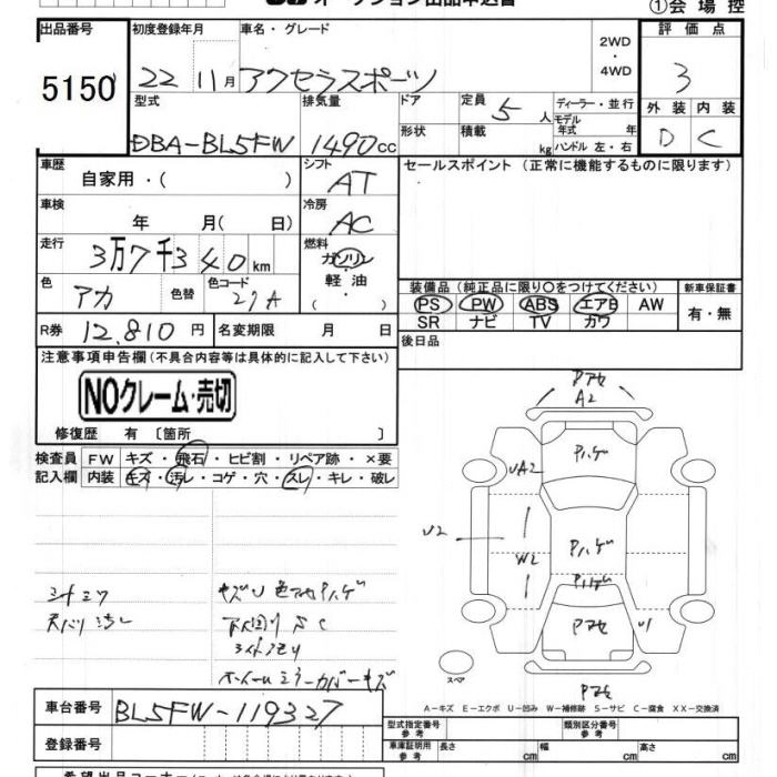 | 1.5S STYLE | DBA-BL5FW | ZY-VE | FF | CVT | 1498cc | 111ps(82kW)/6000rpm | AИ-92 | 1 850 000 | |