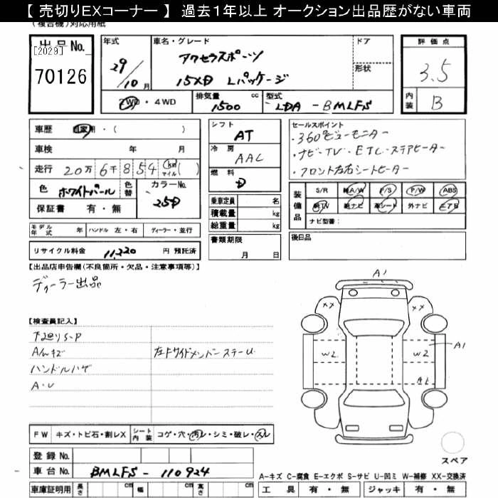 | 15S L PACKAGE | DBA-BM5FS | P5-VPS | FF | 6AT | 1496cc | 111ps(82kW)/6000rpm | AИ-92 | 2 397 600 | |