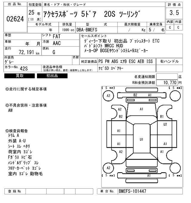 | 15C | DBA-BM5FS | P5-VPS | FF | 6AT | 1496cc | 111ps(82kW)/6000rpm | AИ-92 | 1 711 500 | |