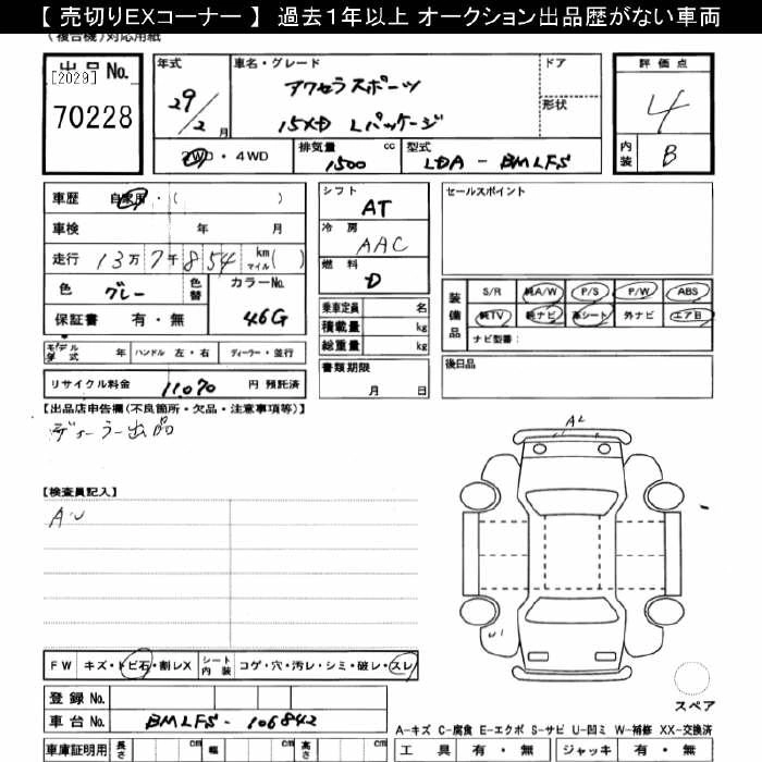 | 15S L PACKAGE | DBA-BM5FS | P5-VPS | FF | 6AT | 1496cc | 111ps(82kW)/6000rpm | AИ-92 | 2 397 600 | |