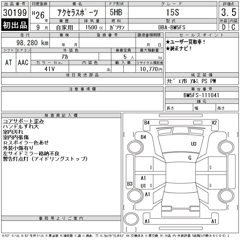 | 15S TOURING | DBA-BM5FS | P5-VPS | FF | 6MT | 1496cc | 111ps(82kW)/6000rpm | AИ-92 | 2 138 400 | |